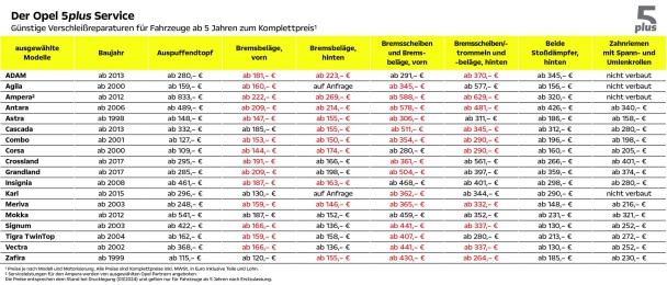 1 Die Opel Tiefpreisgarantie gilt nur bei Montage durch uns am Fahrzeug und nur bei Verwendung von Opel Original Teilen. Voraussetzung ist die Vorlage eines schriftlichen Wettbewerbsangebots: gesondert ausgewiesene Kalkulation von Opel Original Teilen und Lohn, nicht älter als 14 Tage, Standort des Wettbewerbers innerhalb der BRD und innerhalb eines 30-km-Radius zu uns.